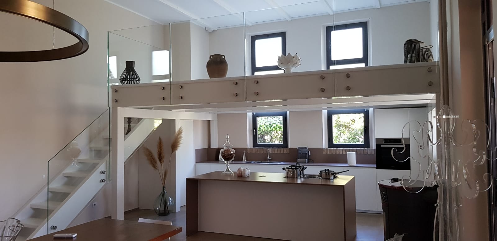 Le balaustre in vetro trasformano scale e soppalchi in protagonisti dell’ambiente, donando leggerezza e continuità visiva agli spazi interni. Ogni balaustra è progettata per garantire solidità e sicurezza, ma anche per integrarsi con l’arredamento circostante, diventando un vero e proprio elemento decorativo.